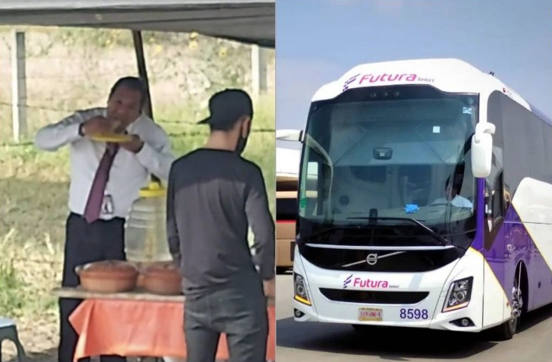 El usuario @kyre07_ de TikTok mostró una serie de imágenes en las que evidenció al conductor de la empresa Futura, a quien no le importó llevar pasajeros y se bajó a comer unos tacos.