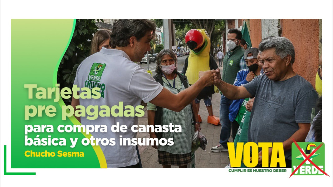 Jesús Sesma candidato del Partido Verde por el 5to Distrito Federal, propone la entrega de vales para alimentos de la canasta básica para todas aquellas familias que han perdido su trabajo en esta temporada de pandemia, lo anterior con el fin de apoyar la economía de las familias mexicanas, en este sentido, se planea entregar una tarjeta en la cual se depositara mensualmente cierta cantidad de dinero según el número de dependientes económicos.